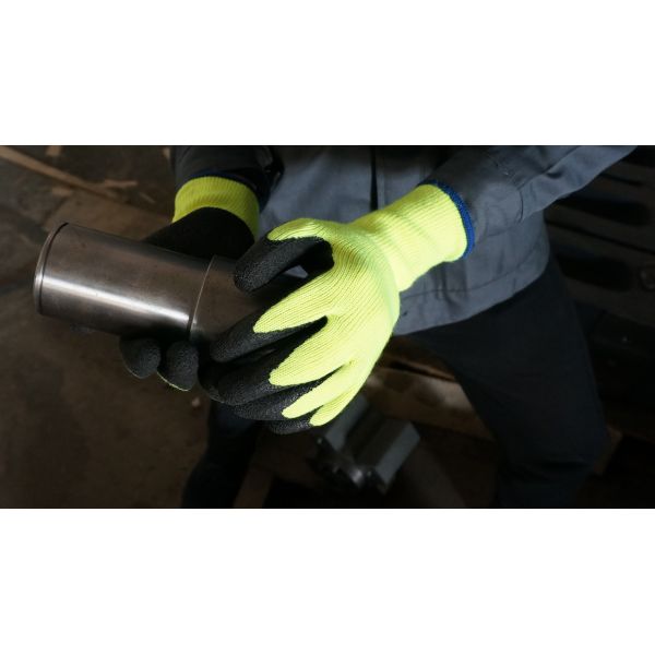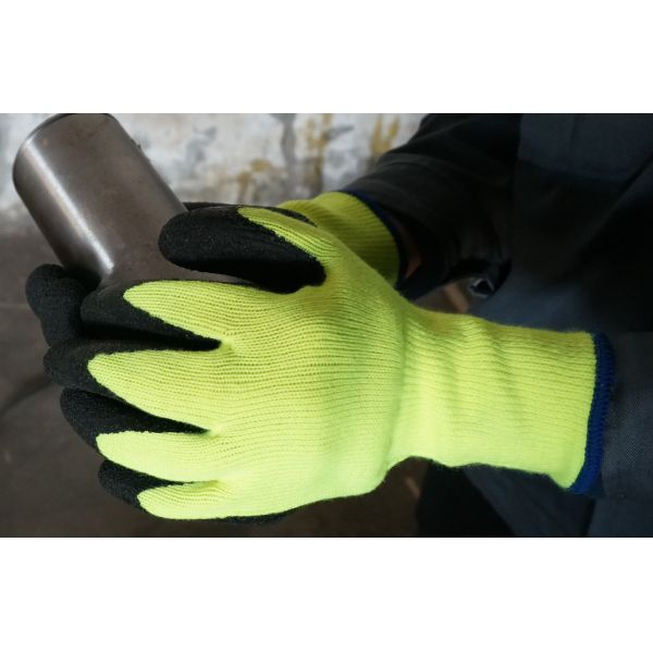 7 gauge acrylic terry brushed knit inside can keep your hand warm in cold weather.Acrylic terry brushed knit inside can protect hand from cold weather.Good elasticity provides comfortable feeling to wear;Puncture-resistant and good abrasion resistant.Offers great dexterity and tactile sensitivity with water-resistance properties.Dark color coating hides the dirt, extending the life of the glove.Provides ANSI Cut Level 1 Cut Resistance and ANSI Level 2 Abrasion Resistance.Knit wrist colored overedge with a rubber band finish reduces fraying and provides a visual aid in sizing.Can be laundered to increase wear time.Machine washable for longer service life.Ideal for gardening and room cleaning and transportation and Warehousing and Construction and so on